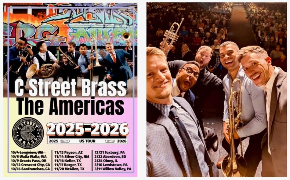 Returning from a two-month tour across the United States from Washington state to California including San Francisca, Arizona, New Mexico and Texas, C Street Brass will conclude their busy fall season of touring with their entertaining Holiday Show in Lincoln Hall.