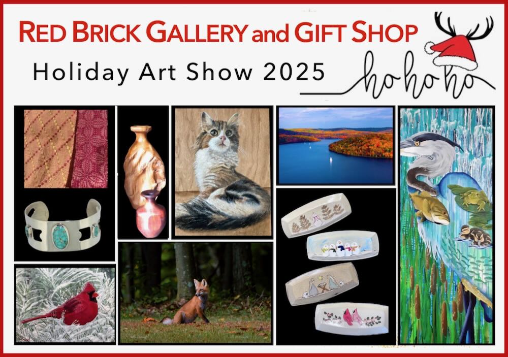 The Red Brick Gallery & Gift Shop’s Annual Holiday Art Show & Exhibit spans six weekends from Friday, November 15 to Sunday, December 22, featuring one-of -a-kind, high quality, original artisan-made gifts created by Red Brick Gallery Cooperative Member Artists: Karin Arnds, Taylor Banner, Chris Bauer, Joanne Crosbie, Kurt Crosbie, Mark DeWalt, Mel Dunlap, Donna Edmonds, Ann Harting, Kathy Hogg, Dennis Keyes, Jason Floyd Lewis, Karen Mortland, Charlie Platt, Nissa Rappoport, Cathy & Jack Trzeciak, and Heidi Wirtner.