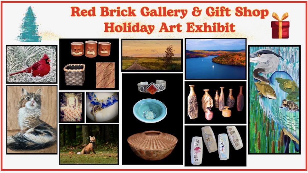 Looking for one-of-a-kind gifts for those special people on your list – you are sure to find some at The Red Brick Gallery and Gift Shop Annual Holiday Art Show & Exhibit as you shop locally for Christmas ornaments and special holiday gifts in a variety of media in the first-floor gift shop: Gorgeous pottery & ceramics, one-of-a kind silversmith, gem-stone & costume jewelry, fiber art, knit wearables and hand woven shawls and rugs, oil & watercolor paintings, and pencil drawings & fine art photography.