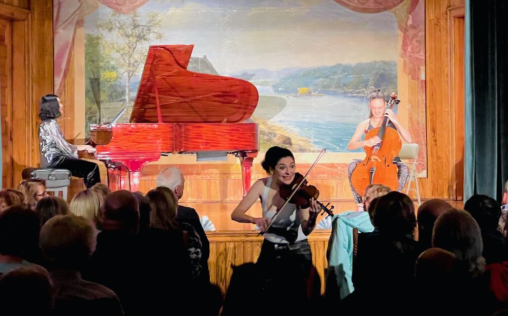 Highlights from recent performances include appearances with the North Charleston POPs, Cape Symphony, Boulder Chamber Orchestra, and the Symphonies of Victoria, Midland and Springfield as well as at Music in the Mountains, Redlands Bowl, OK Mozart Festival, Festival Mozaic, Herb Alpert’s Vibrato Grill, and Bear Valley Music Festival. Upcoming performances include notable debuts in NY including 54 Below, Sheen Center, Rockwood Music Hall, and around the country at the Laureate Series sponsored by Indianapolis Violin Competition, Lied center, Batavia Fine Arts Center, Bradford Creative, Cappella Performing Arts Center, Frostburg University, Truman University among many others. The trio keeps a busy tour schedule, performing over 60 performances around the globe each season.