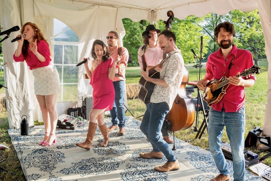On the Eve of Foxburg’s Fall Festival, the ‘wildly charismatic’ BUFFALO ROSE – a six-piece modern folk/Americana band from Pittsburgh that has been touring the country and attracting audiences from bluegrass and roots to folk and pop – makes it debut in Lincoln Hall on Saturday, September 26 at 7:30 PM with gorgeous vocal harmonies and a string-band of dobro, mandolin, guitar and bass.