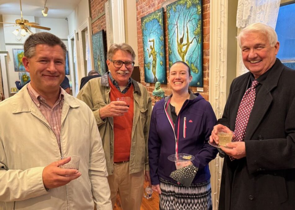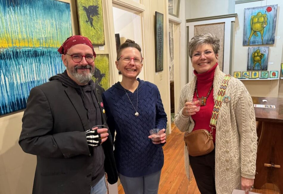 A champagne toast to the Wurlitzer’s 20th Birthday was enjoyed with mini-birthday cupcakes from The Crow’s Cupboard in the Red Brick Gallery closing reception of the exhibit of Rafi & Klee – INTERWOVEN: The Art of Growth and Connection.